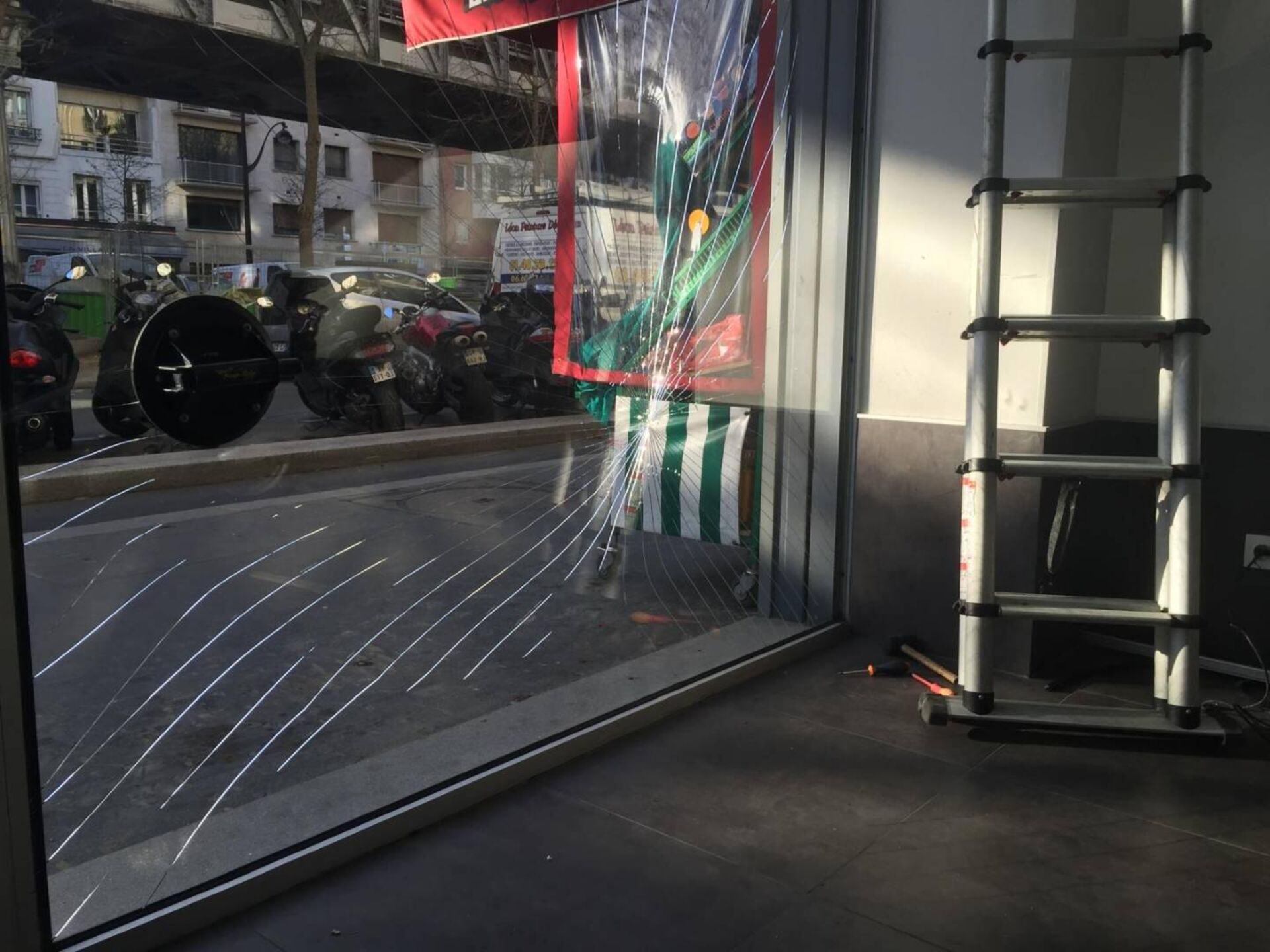 Remplacement de double vitrage après vitre brisée d’une vitrine de commerce à Paris 15e